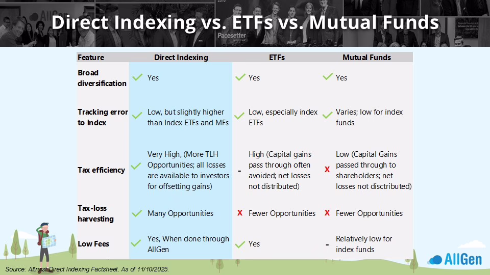 At AllGen, we believe financial freedom is achieved not just by growing wealth, but by managing it wisely. Direct indexing represents one of the most compelling evolutions in tax-efficient investing available today for High-Income Investors.
